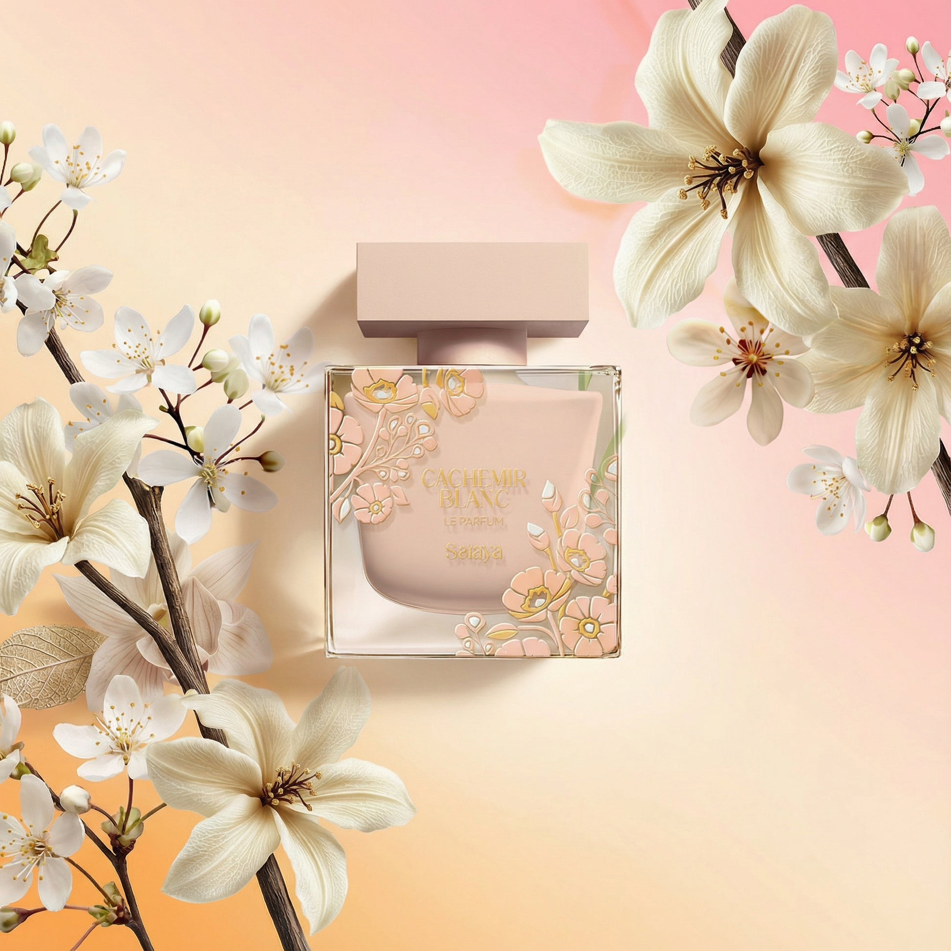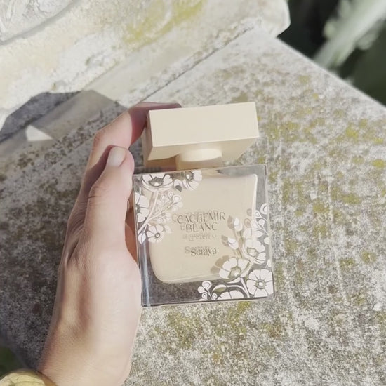 Une fragrance douce et enveloppante, où les fleurs blanches rencontrent la chaleur du bois de cachemire, rehaussées par la tendresse de la pêche et la fraîcheur de la poire.