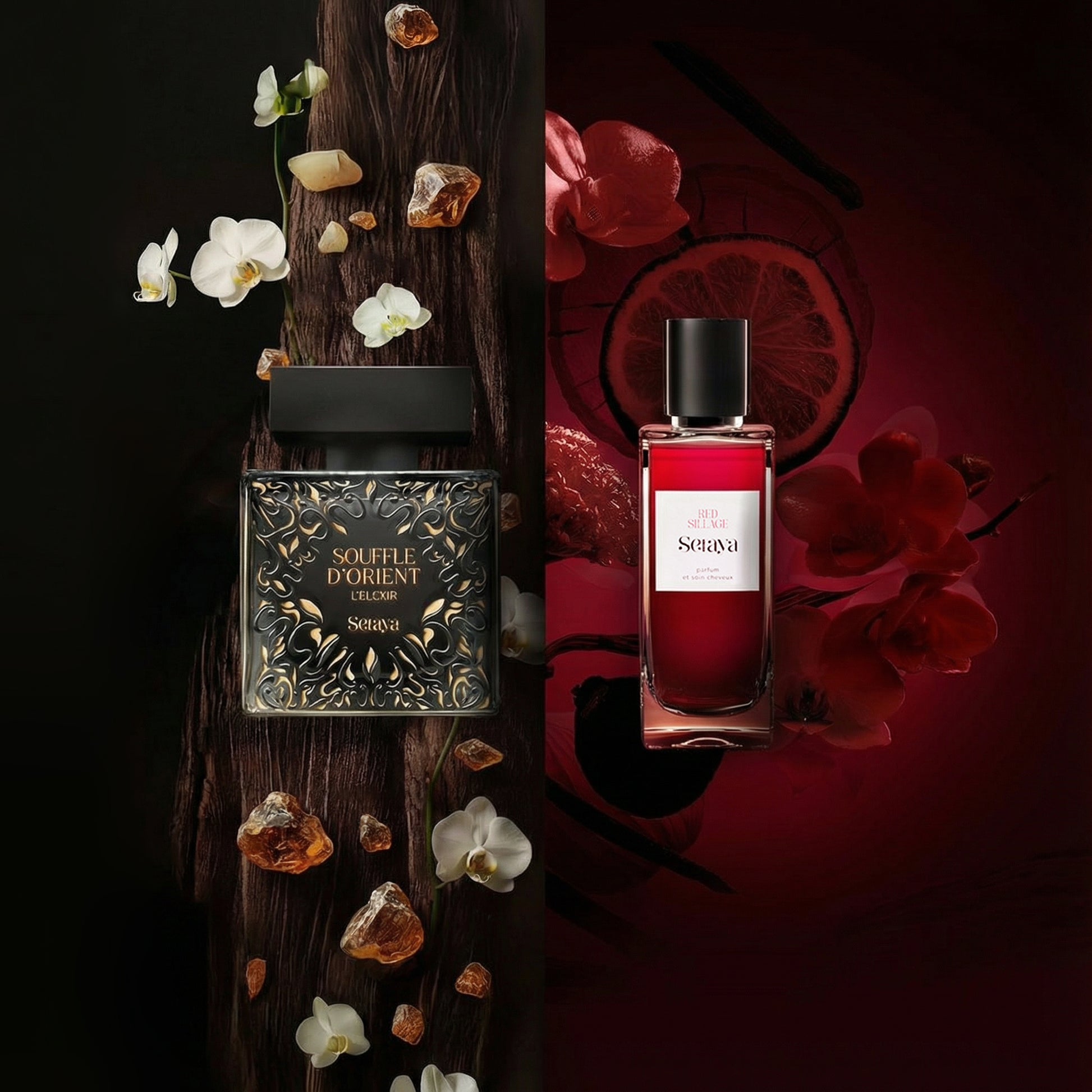 Cette alliance incendiaire révèle une harmonie sensuelle où la fraîcheur lumineuse des agrumes s’embrase au contact des épices et des fleurs opulentes. Red Sillage apporte une douceur dorée, miellée et addictive, tandis que Souffle d’Orient enveloppe la peau d’une chaleur boisée et orientale profonde. Ensemble, ils dessinent un sillage riche et captivant, entre éclat floral, gourmandise suave et mystère oriental, laissant une empreinte intense, élégante et inoubliable.